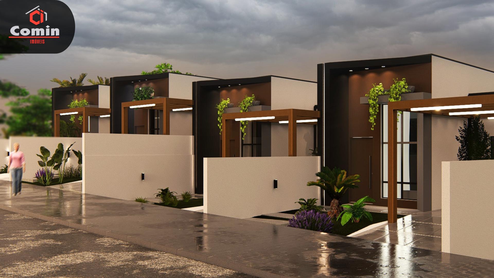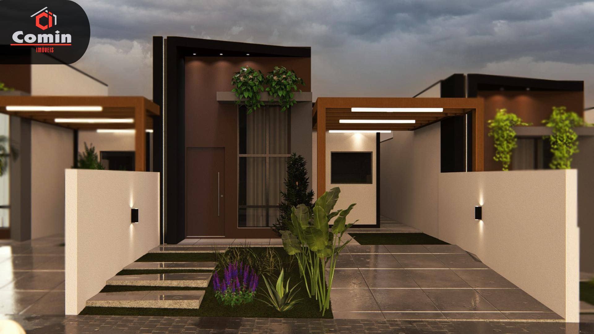Casa em fase de construção com 65 metros quadrados, acabamentos em porcelanato e laje em gesso.